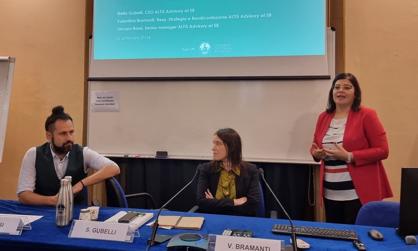 Il corso è progettato e realizzato in partnership con ALTIS Advisory SB, lo spin-off dell’Università Cattolica che offre servizi di consulenza a supporto della generazione di impatti positivi degli attori economici. Con il patrocinio del Forum per la Finanza Sostenibile